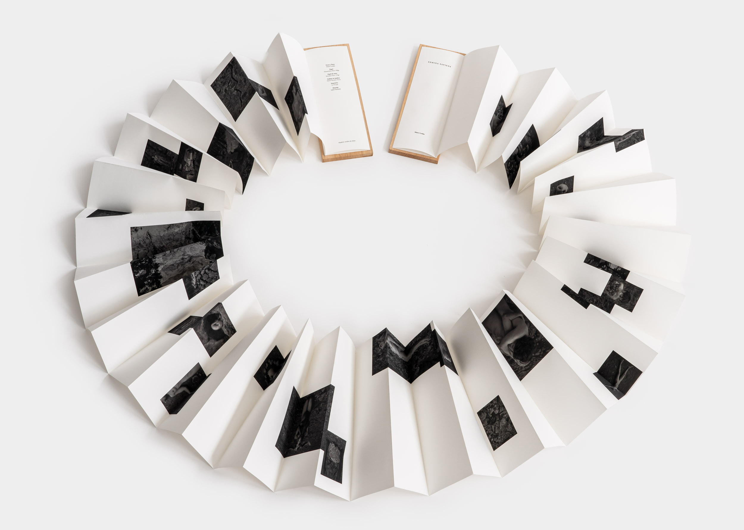 LIBRO (tapas de madera de roble e impresión en papel Hahnemühle Rice 100 gr. y papel de texto Munken Print 135 gr.)